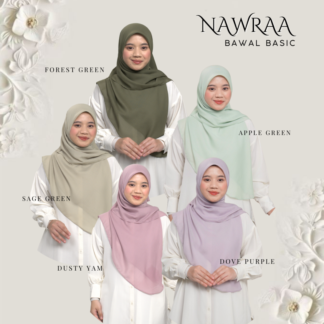 Bawal Nawraa ini hadir dengan 2 bidang iaitu bidang 50 dan 55 yang sesuai untuk MUSLIMAH MODEN yang ingin bergaya sambil menutup aurat. Ia direka khas untuk semua tingkat umur terutama remaja yang KURANG MASA untuk bersiap .