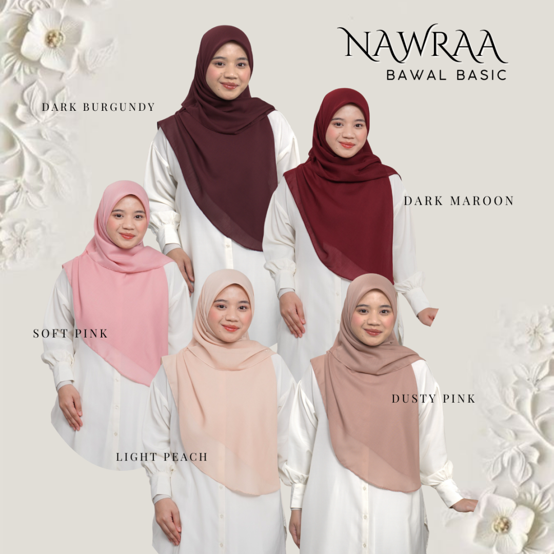 Bawal Nawraa ini hadir dengan 2 bidang iaitu bidang 50 dan 55 yang sesuai untuk MUSLIMAH MODEN yang ingin bergaya sambil menutup aurat. Ia direka khas untuk semua tingkat umur terutama remaja yang KURANG MASA untuk bersiap .