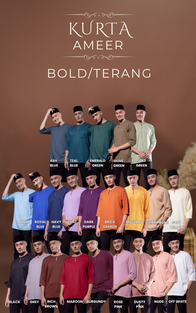 Kurta 3 Suku ini merupakan pakaian tradisi Melayu semasa musim perayaan. Koleksi kurta kalini menggunakan material Premium Como Cotton yang lebih FLOWY dan Lembut.